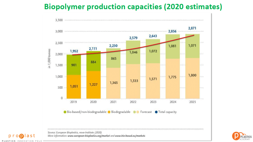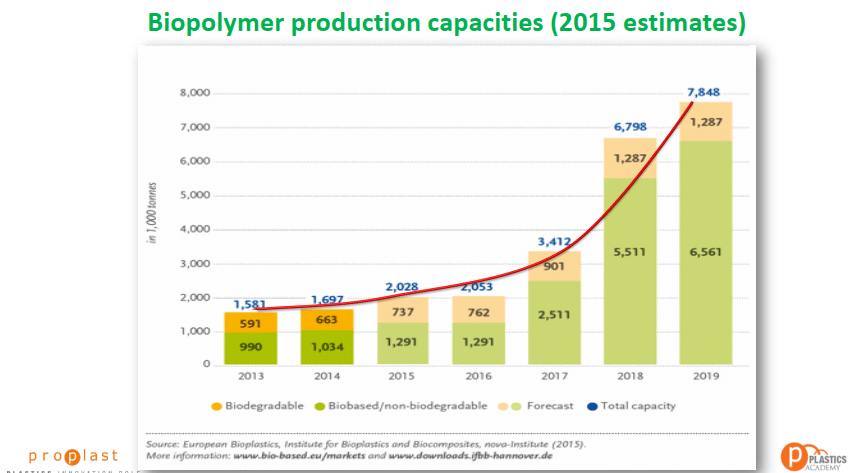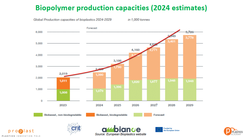 Negli ultimi anni, l’adozione della plastica bio-based non ha raggiunto le aspettative iniziali. Le previsioni di crescita del 2013 non hanno trovato conferma nei dati successivi; un’analisi aggiornata nel 2020 ha infatti evidenziato un mercato sostanzialmente flat tra il 2013 e il 2019. Solo l’ultima revisione del 2023 torna a ipotizzare una crescita accelerata verso il 2029.